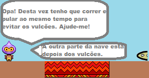 Dude está enfrentando perigos como vulcões e erupções do planeta no qual se perdeu, ajude-o a evitá-los e coletar a 4ª parte da nave.
