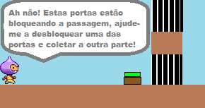 Dude encontrou uma tripulante do seu planeta que se perdeu, ajude-a a ativar o switch para abrir o portão para Dude coletar a 6ª parte da nave.